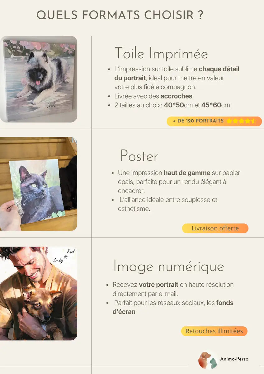 Nous sommes deux passionnés d'art et de nos boules de poils. Nous avons fondé Animo-Perso.fr pour immortaliser l'amour qu'il vous porte.